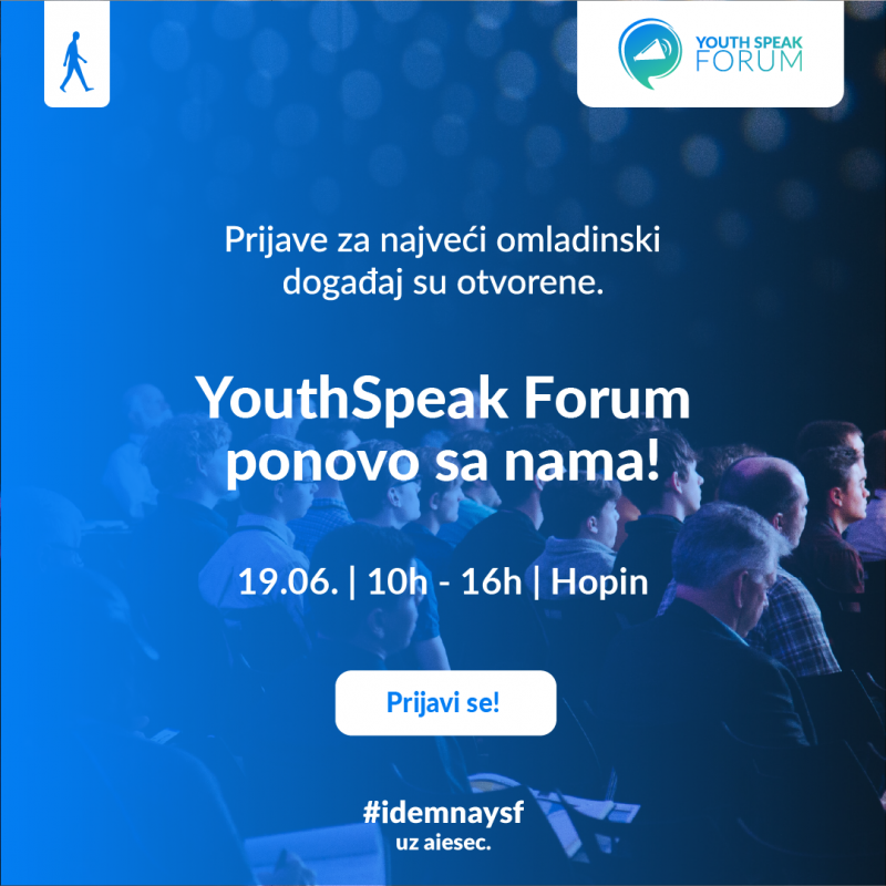 YouthSpeak Forum je događaj koji organizuje AIESEC, najveća omladinska organizacija u svijetu, koja svoje sjedište ima i u Bosni i Hercegovini. Ovaj događaj je do sada okupio preko 500 mladih ljudi iz BiH i ima za cilj da poveže mlade ljude sa liderima iz javnog sektora i omogući im razmjenu mišljenja i ideja.