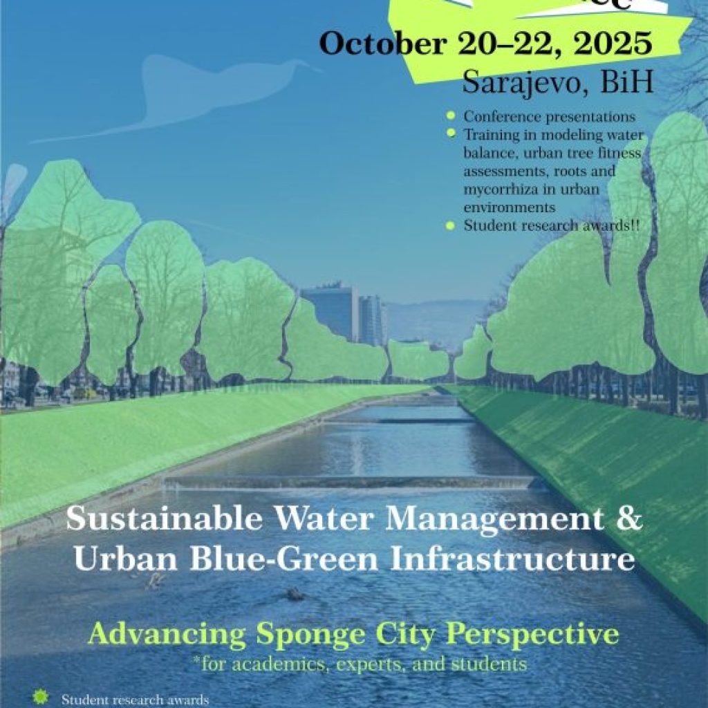 We are pleased to announce the international conference “Sustainable Water Management and Urban Blue-Green Infrastructure for Advancing Sponge City Perspectives in Bosnia and Herzegovina (SPONGE CITY-BH)”, which will take place in Sarajevo from October 20–22, 2025.