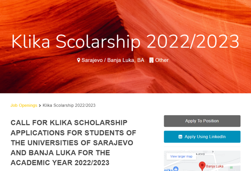 Obavještavamo da je KLIKA d.o.o Sarajevo raspisala JAVNI POZIV za dodjelu jednokratnih stipendija u iznosu od 1000,00 KM studentima javnih fakulteta Univerziteta u Sarajevu i Univerziteta u Banja Luci.