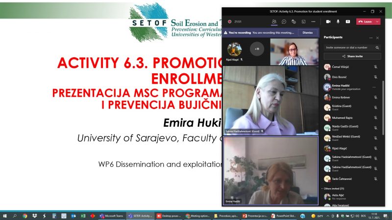Master studjski program EROZIJA ZEMLJIŠTA I PREVENCIJA BUJIČNIH POPLAVA je promoviran među studentima Šumarskog fakulteta u Sarajevu 13. 7. 2021. godine.