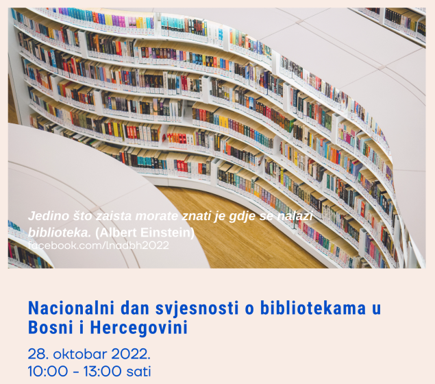 Univerzitet u Sarajevu 28.10.2022. godine obilježava Nacionalni dan svjesnosti o bibliotekama u Bosni i Hercegovini, pod motom „Jedino što zaista morate znati je gdje se nalazi biblioteka (Albert Einstein)“.