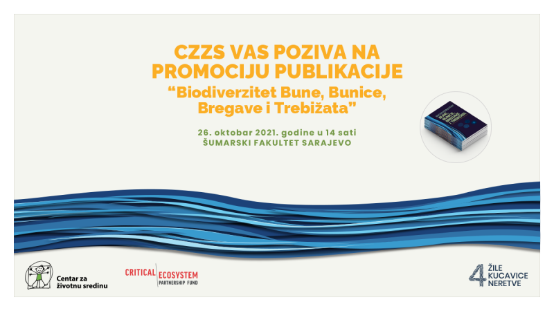 Centar za životnu sredinu organizuje promociju publikacije „Biodiverzitet Bune, Bunice, Bregave i Trebižata“ koja će se održati 26.10.2021. godine u 14 časova na Šumarskom fakultetu u Sarajevu (Zagrebačka 20, Sarajevo).
