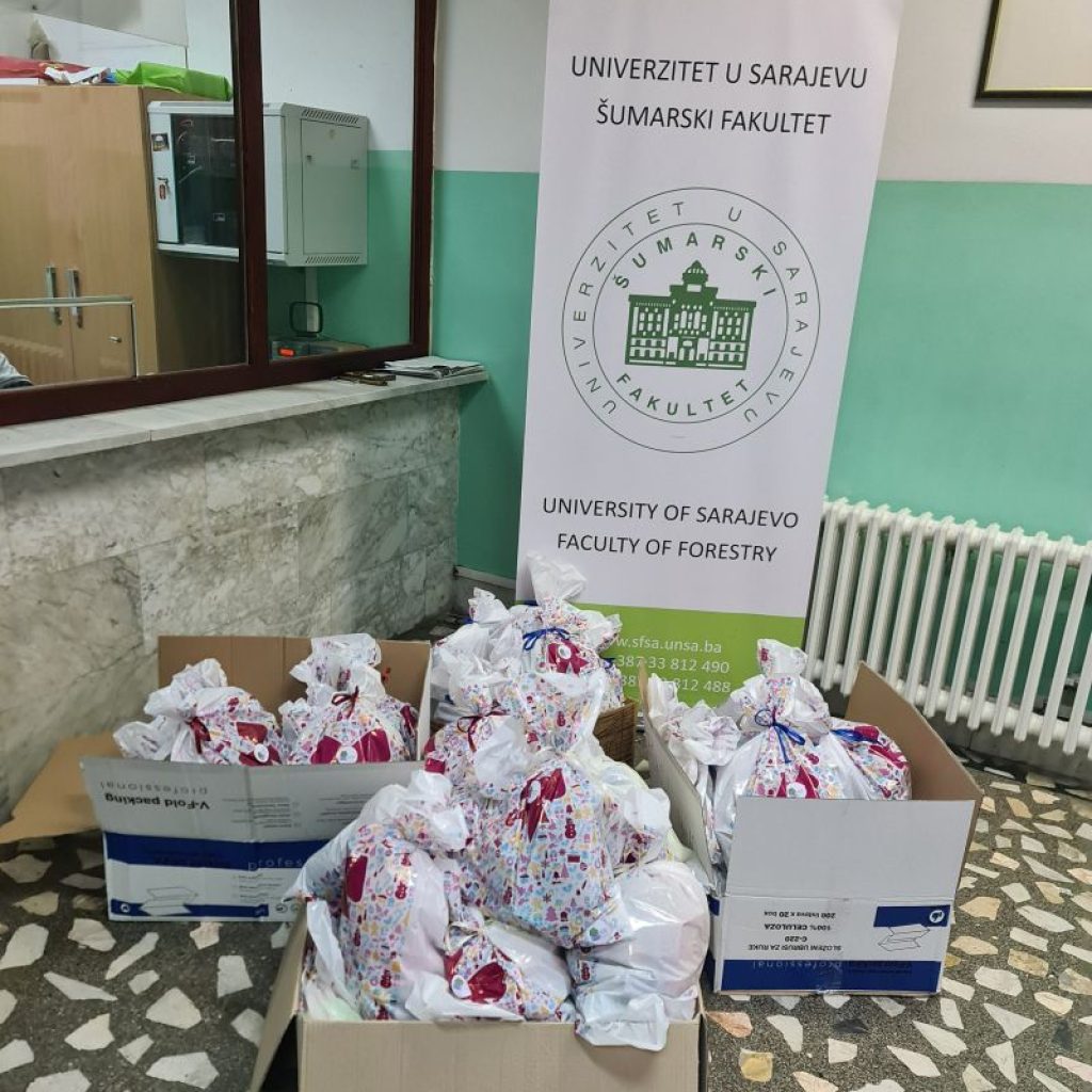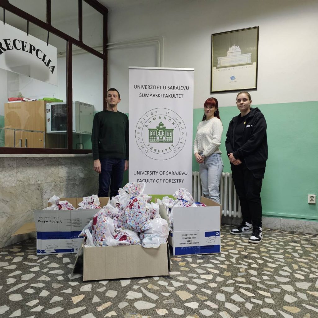 Asocijacija studenata Šumarskog fakulteta uspješno je završila akciju prikupljanja sredstava i igračaka za paketiće za KJU Dom za djecu bez roditeljskog staranja. Prikupljeno je 550,00KM i tri vreće igračaka. U skladu sa tim sredstvima, napravili smo 49 paketića za djecu uzrasta 0-10 godina, te 22.12. paketiće dostavili Domu.